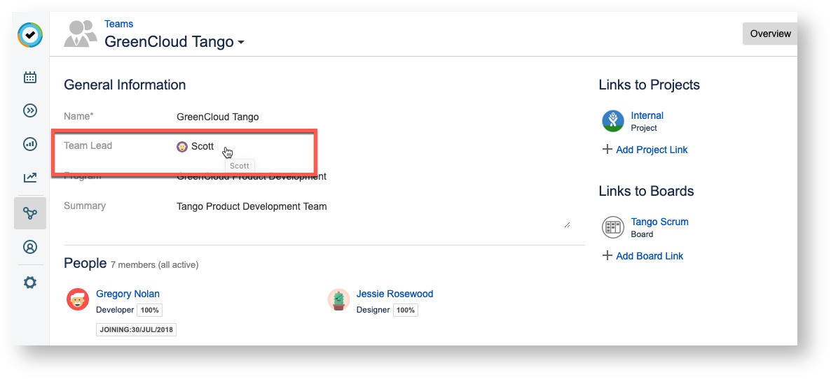 Быть руководителем команды Tempo вовсе не обязательно связано с вашей позицией в вашей организации. Если вы менеджер, обычно создается команда, в которую входят служащие, которые отчитываются перед вами, но вы можете создавать команды в Tempo, с кем угодно в них. Например, вы можете быть руководителем группы для проекта, над которым работают люди из разных отделов вашей компании, или вы могли бы стать руководителем команды для команды scrum, члены которой имеют разные роли.