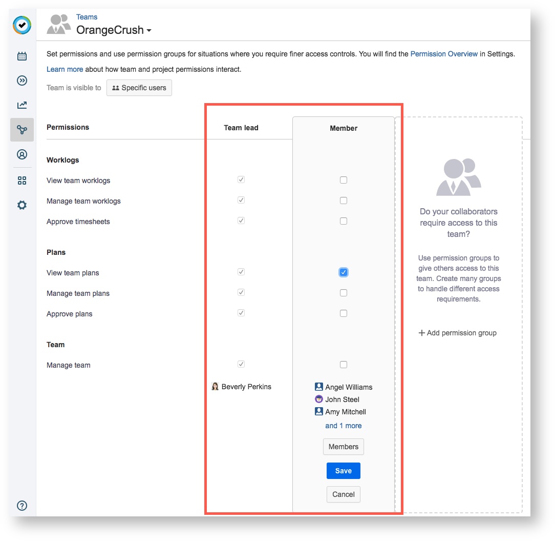 - По умолчанию «Члены» ("Members"). не имеют каких-либо разрешений для команды - например, они не могут просматривать рабочие журналы своих товарищей по команде. Возможно, вы не хотите, чтобы все члены группы могли просматривать рабочие журналы друг друга или планировать время для друг друга, но предоставление им разрешений на просмотр планов групп позволяет им видеть работу, запланированную для их товарищей по команде или их товарищей по команде.