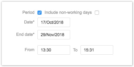 - Если вы выберете опцию Период ("Period"), вы можете записать время по задаче за период времени.