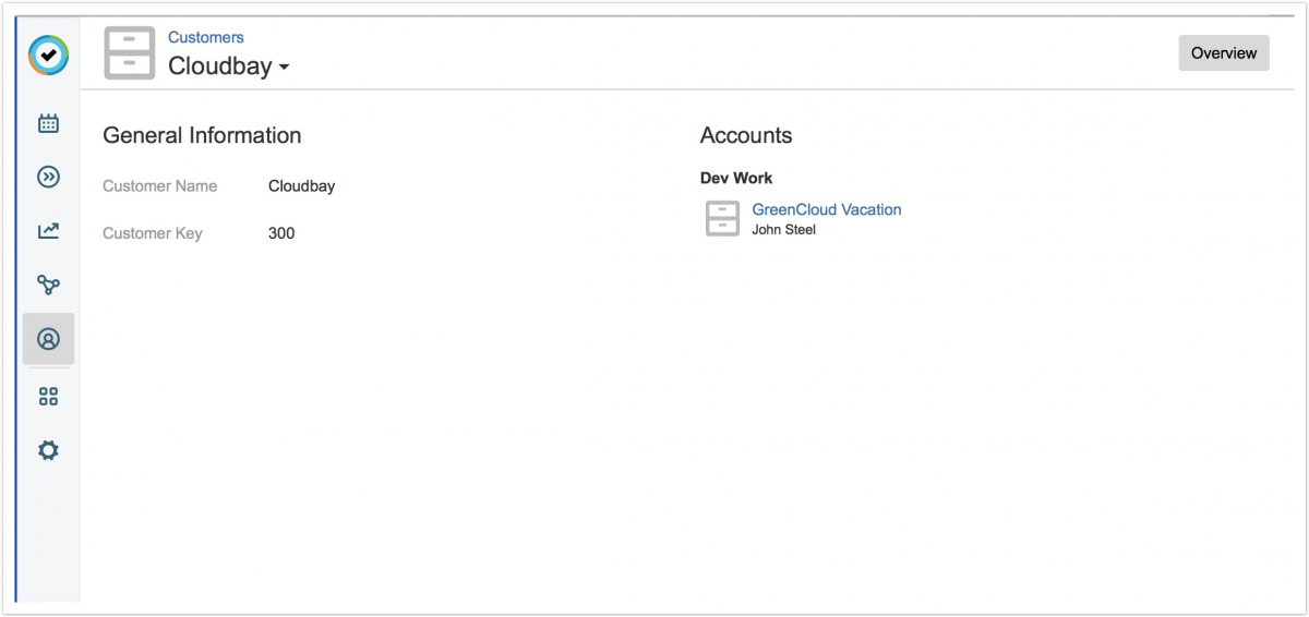 - Счета, связанные с клиентом, организованы по категориям (если применимо). Вы можете нажать на имя учетной записи, чтобы перейти к «Обзор учетных записей». Точно так же в «Обзор учетных записей» вы можете щелкнуть имя клиента, чтобы вернуться в просмотр «Клиент» ("Customer view").