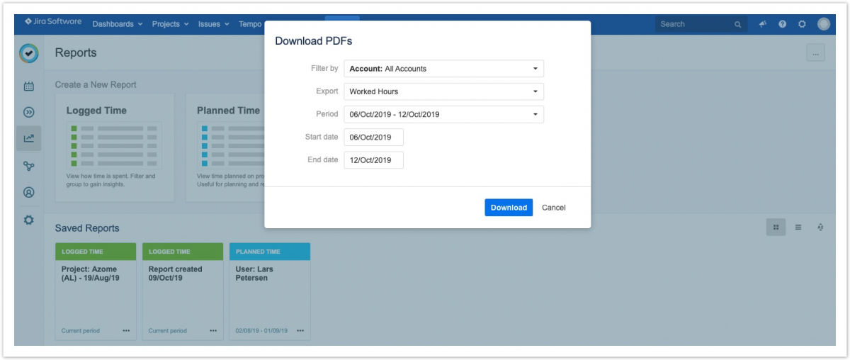 По материалам Tempo Server: Downloading Account Report PDFs