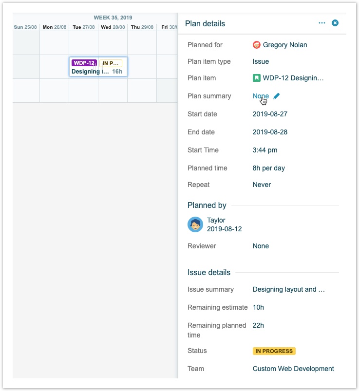 - Чтобы переместить существующий план, перетащите план на другое время или члена команды.