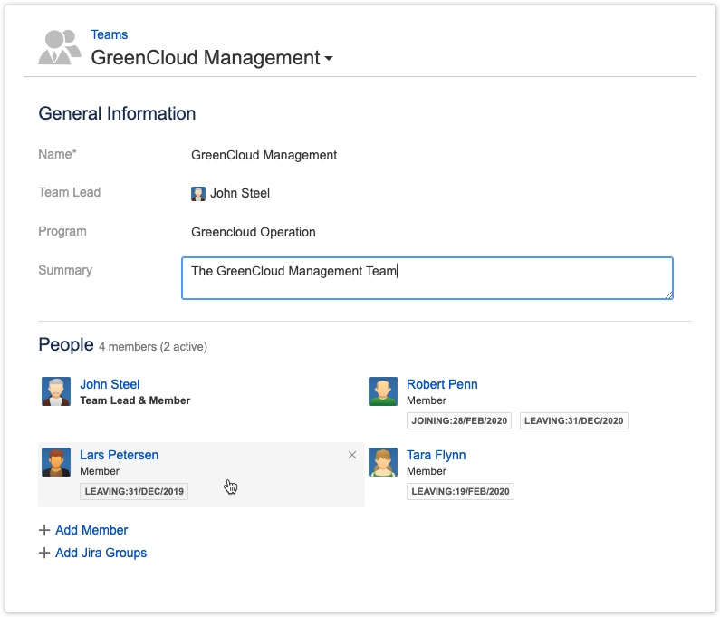 Вы можете редактировать основную информацию о команде: название команды, сводное описание, руководителя команды и программу (или группу команд), к которой принадлежит команда, а также миссию команды. Вы также можете настроить членство в команде, например, назначив члену команды разные роли на разные периоды времени или изменив количество времени, которое член команды посвящает команде.