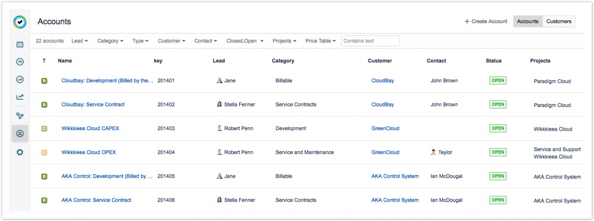Если у вас есть разрешения Администратора учетных записей Tempo ("Tempo Accounts Administrator"), вы можете создавать, управлять и удалять учетные записи в представлении «Учетные записи» ("Accounts") user. Добавив «Пользовательское поле учетной записи Tempo в просмотр задач Jira» ("Tempo Account custom field to the Jira issue view"), а затем «Связав учетную запись с проектом Jira» ("link the Account to the Jira project"), вы можете связать рабочие журналы задач с этой учетной записью.