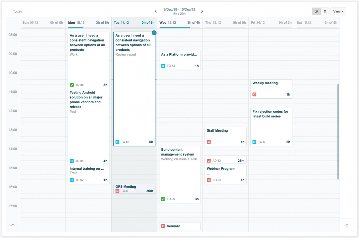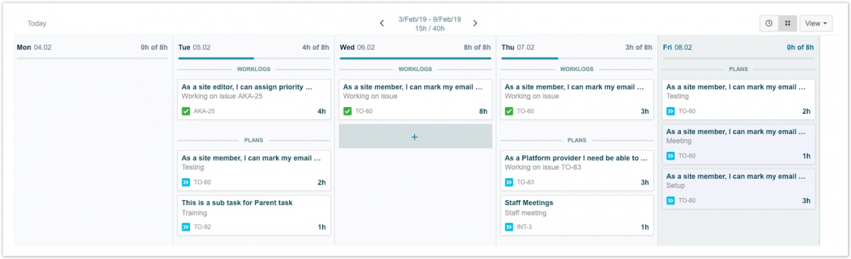 Мой рабочий календарь в табелях учета рабочего времени Tempo Timesheets for Server