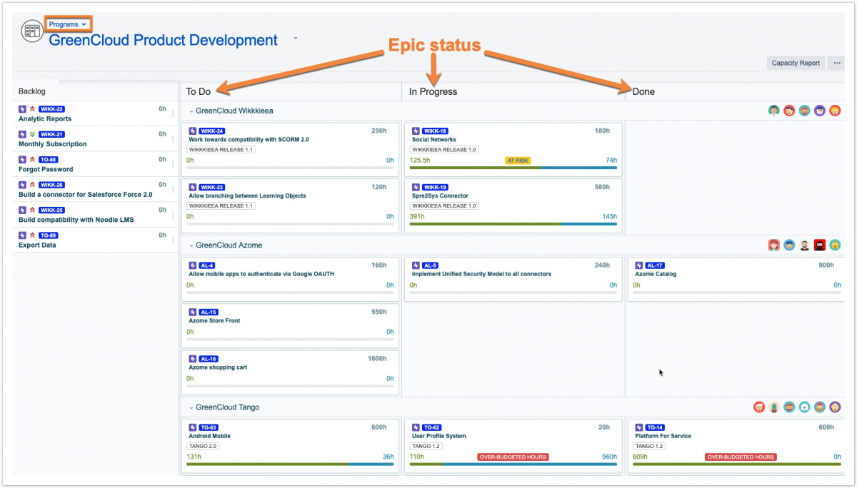 По материалам Tempo Server: Planning Epics for a Program: Overview of Epic Status