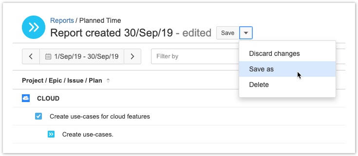- Создание и доступ к сохраненным отчетам - Tempo Planner for Server