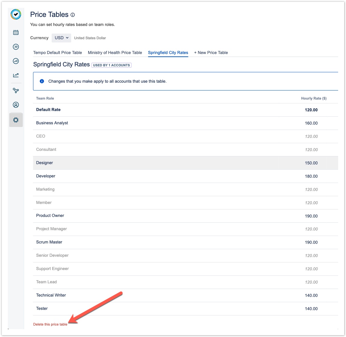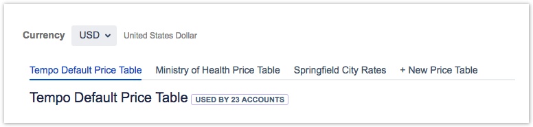 Несколько таблиц цен позволяют менеджерам учетных записей использовать разные цены для разных учетных записей. Новые таблицы цен наследуют ставки и роли «Таблицы цен по умолчанию» ("Tempo Default Price Table").