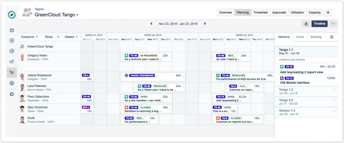 У каждой команды должен быть руководитель команды, который отвечает за координацию ресурсов, управление расписаниями и утверждение планов для своих членов команды. В следующих разделах дается обзор того, как использовать временную шкалу команды для планирования работы своей команды и просмотра ее возможностей.