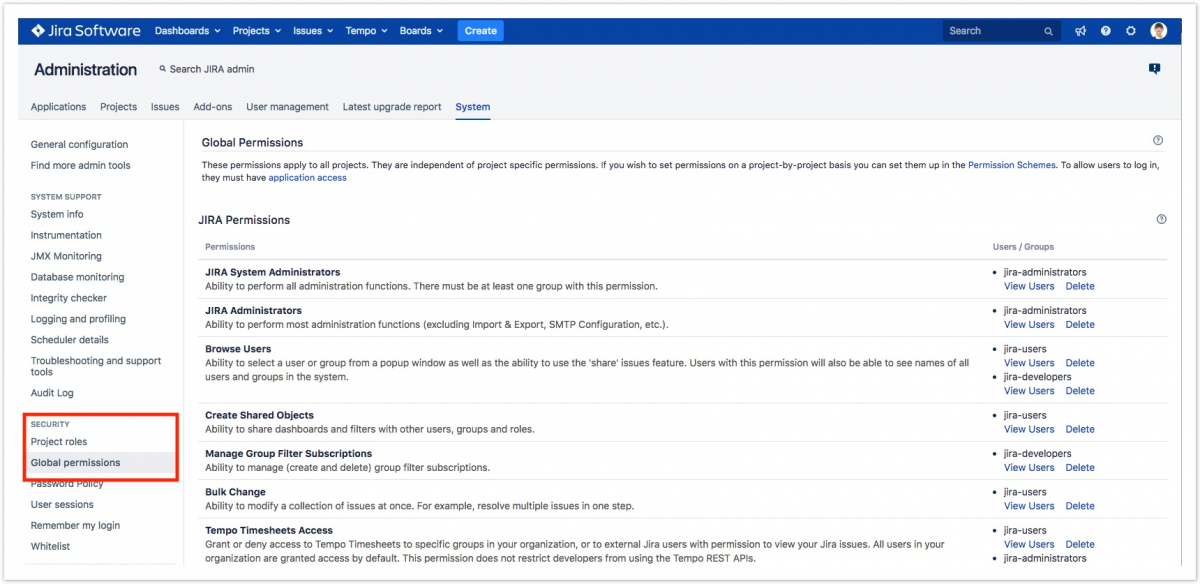 По материалам Tempo Server: Tempo Administrator Permissions in Tempo Timesheets for Server