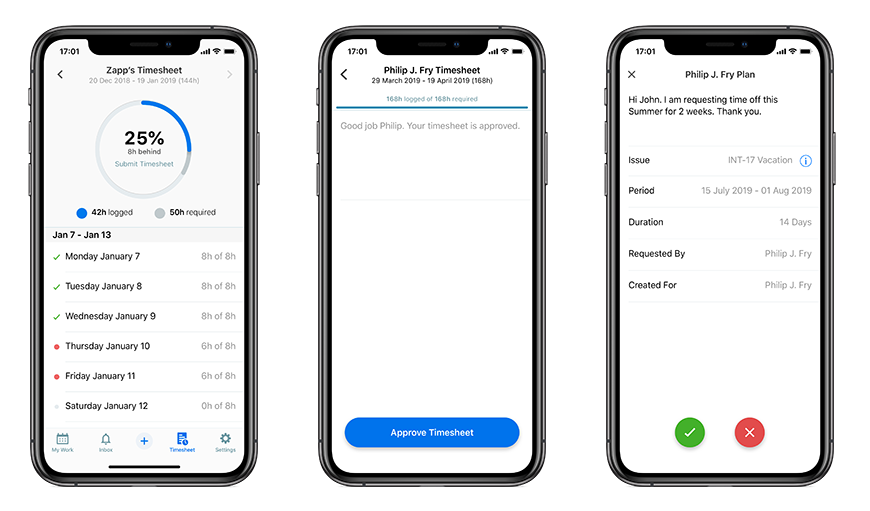 С помощью мобильного приложения Tempo для сервера вы можете планировать и отслеживать время в пути. Планируйте свою работу, создавайте записи о времени и отслеживайте время на ходу, отправляйте расписание и конвертируйте календарь событий Google и планы Jira по задачам в временные записи. Кроме того, следите за ожидающими расписаниями и планируйте утверждения и запросы от вашей команды через уведомления в вашей папке входящих.