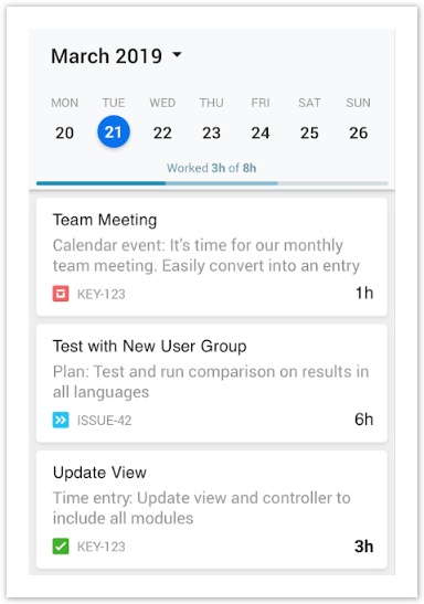 Вы можете создавать записи времени, указав время, которое вы потратили на задач Jira. Кроме того, превратите свои планы и события календаря Google в записи времени.