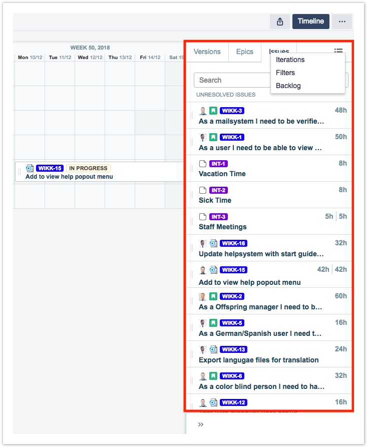 По материалам Tempo Server: Viewing Unresolved Issues on the Team Timeline